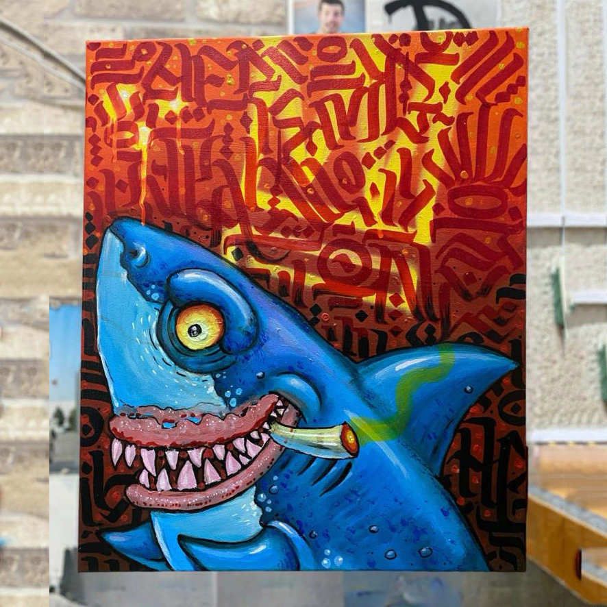 "Head" graffer local de la costa michoacana, liezo de su icónico tiburon con un porro prendido