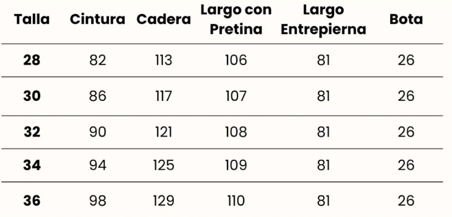 - Las medidas pueden variar según la talla (revisa la tabla de medidas)