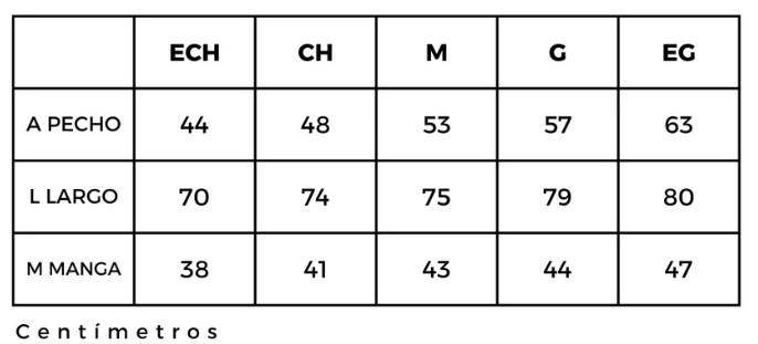 - Las medidas pueden variar según la talla (revisa la tabla de medidas)